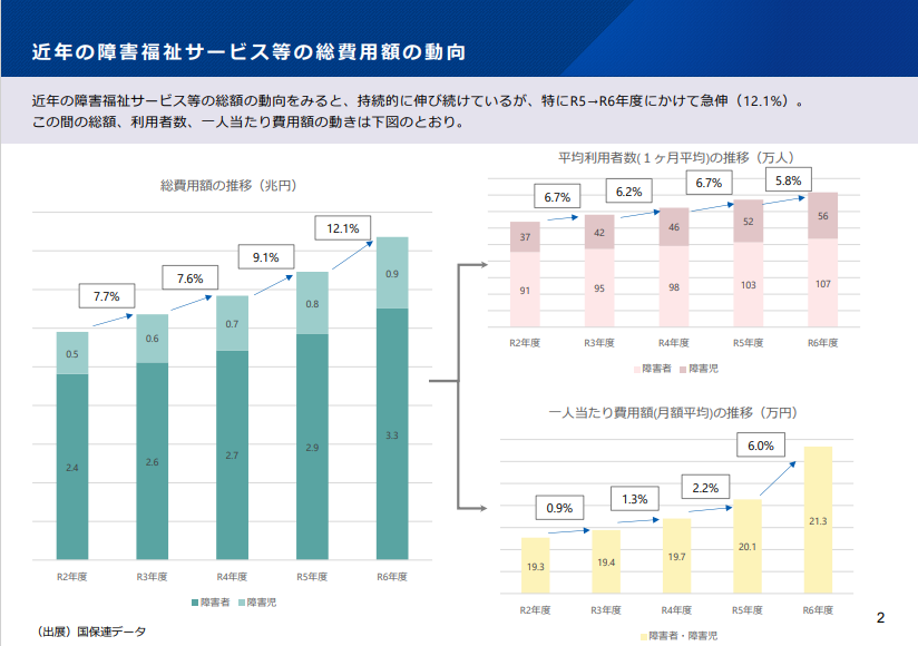 資料2「障害福祉サービス等の費用の状況について」より(P.2、P4)