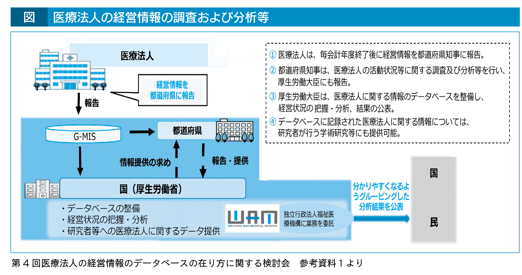 こうしたことから、政府方針等でも医療法人の経営情報の収集とデータベースの構築、国民への丁寧な説明が求められ、2023(令和5)年の医療法改正により、@医療法人の経営情報の収集およびデータベースの整備、A収集した情報を国民にわかりやすくなるよう属性等に応じてグルーピングした分析結果の公表、B医療法人に関するデータベースの情報を研究者等へ提供する制度の創設が行われている。