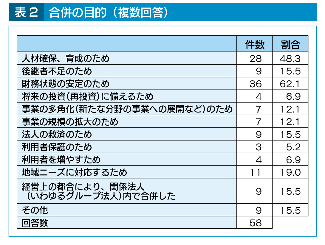事業を継続させ、地域の福祉インフラを維持するためには、合併等を検討することも必要な時代となっている。