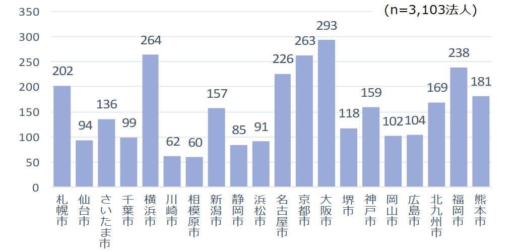 ・ 指定都市別法人数・中核市別法人数については、指定都市・中核市別に再掲している。