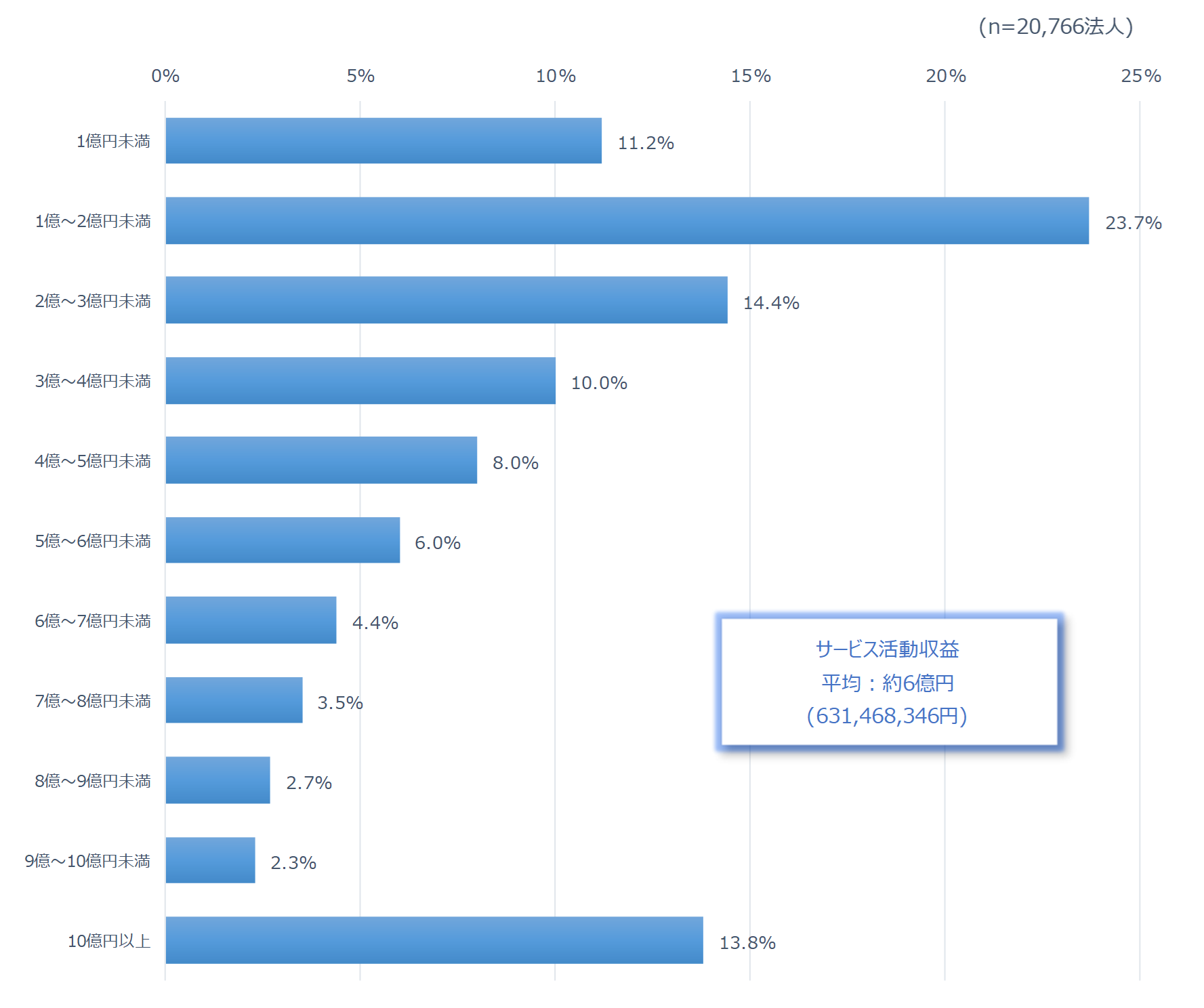 「サービス活動収益」の規模別の法人の割合