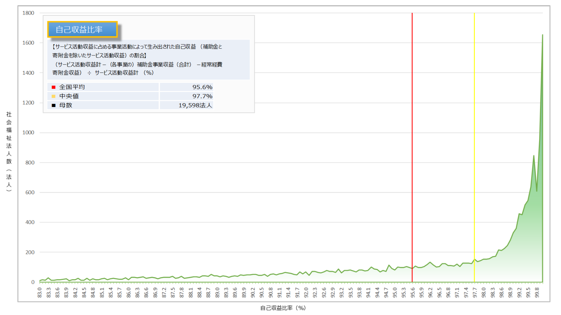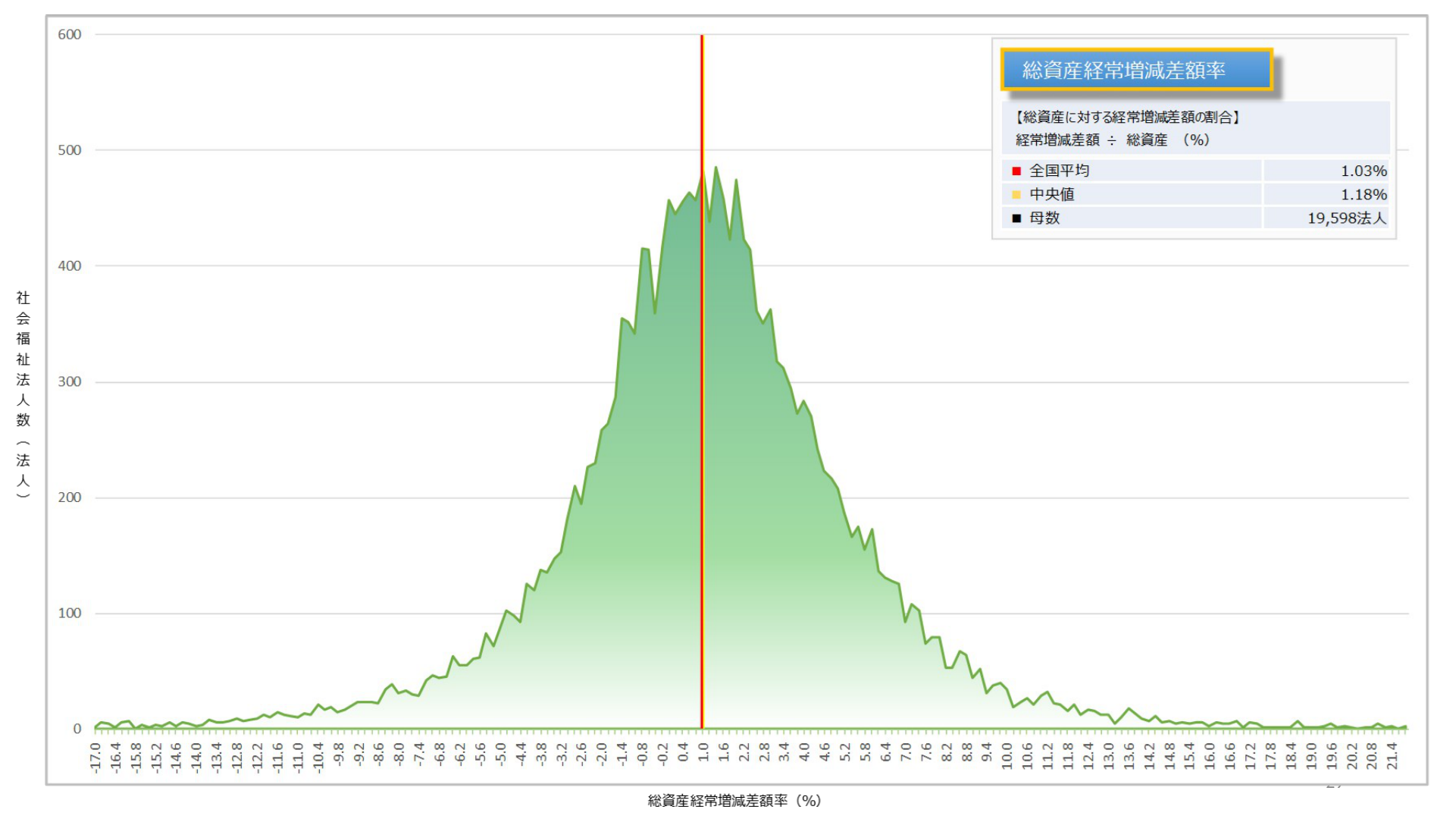 社会福祉法人の主目的は利益獲得ではないが、安定的・継続的に福祉サービスを提供するためには、一定の収益性を確保することが重要となる。本指標は、法人の収益性を理解する上での基本的な指標である。