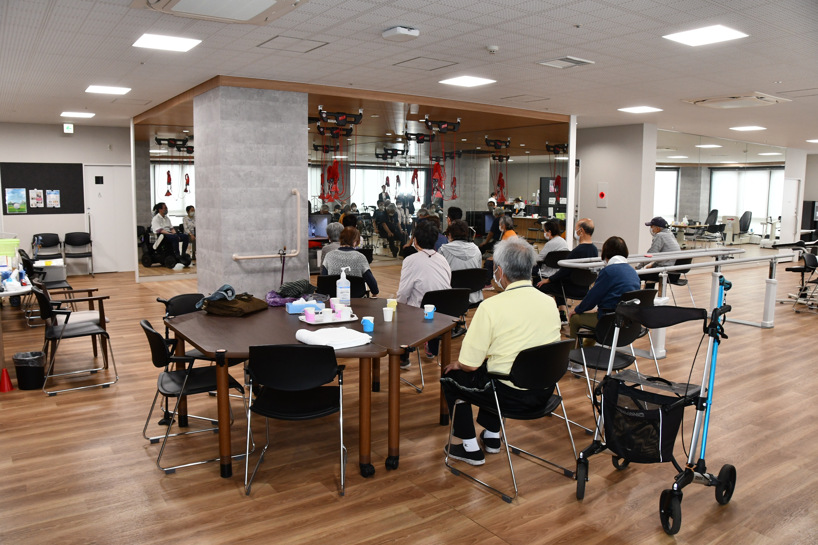 ▲ 屋上庭園では、見晴らしのよい環境のなかで患者がリハビリに取り組むことができる | ▲ 広々した空間のデイケアのスペース |