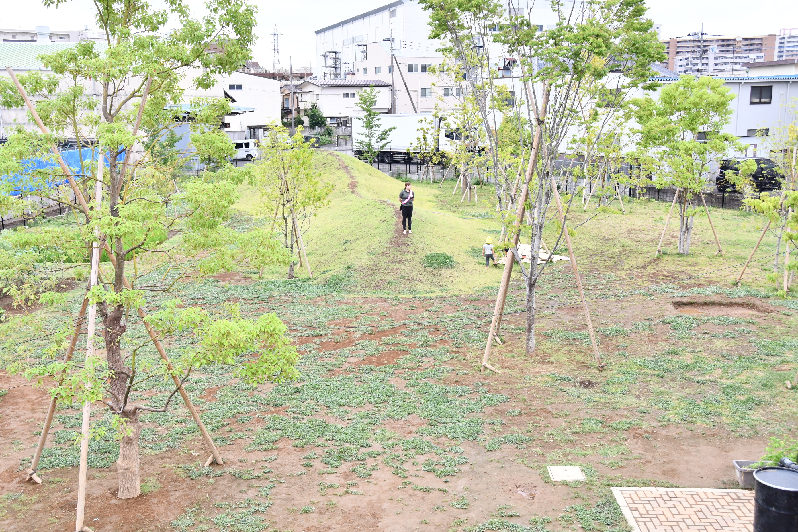 広い園庭では、築山や田んぼ・畑、ヤギ・鶏の小屋を設け、こどもたちが農業体験や動物の飼育を行うほか、井戸を掘削したことにより、思う存分に泥遊びができる環境をつくった。