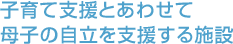 18歳未満の子どもを養育している母子家庭など、生活上のさまざまな課題から子どもの養育が十分にできない場合に、母親と子どもが一緒に入所して生活できる施設です。DVなどの被害者の一時保護も行っています。さまざまな事情のある母親と子どもに対して、生活の安定のための相談や援助を行いながら、自立を支援します。