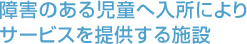 障害のある児童を入所させて、保護、日常生活の指導および自活に必要な知識や技能の付与を行う施設です。福祉サービスを行う「福祉型」と、福祉サービスに併せて治療を行う「医療型」があります。障害児に対する施設は、以前は障害種別ごとに分かれていましたが、複数の障害に対応できるよう2012(平成24)年度より一元化が行われました。ただし、これまで同様に障害の特性に応じたサービス提供も認められています。