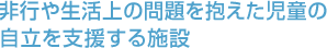 不良行為を行ったか、あるいはそのおそれがある児童、家庭環境等の環境上の理由により生活指導が必要な児童を入所させ、または保護者の下から通わせて、必要な指導を行い、自立を支援することを目的とする施設です。子どもの日常の生活を支えるとともに学校に代わっての学科指導、職業指導などが行われています。退所後の児童に対しても必要な相談や援助を行います。