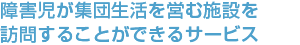 訪問担当者は、障害児施設で障害のある児童に対する指導経験のある児童指導員・保育士(障害の特性に応じ専門的な支援が必要な場合は、専門職)があたります。